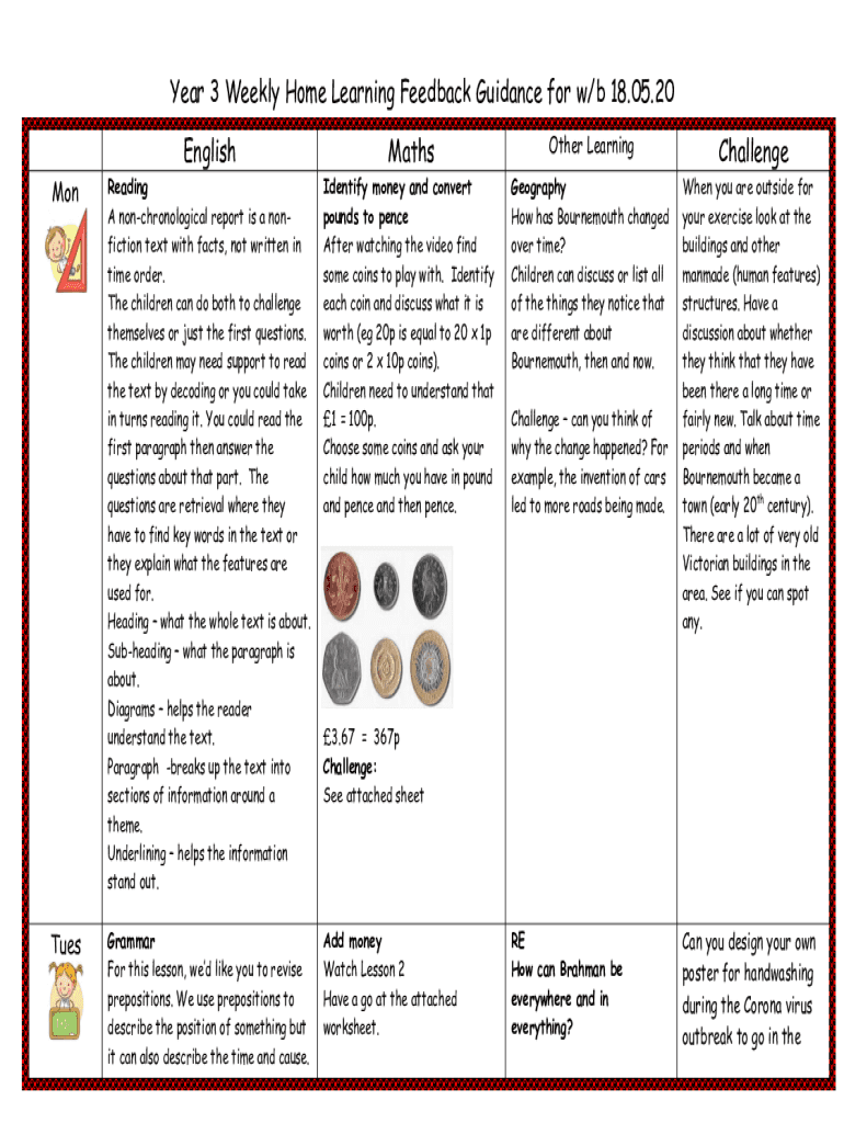 Get the free Year 3 Weekly Home Learning Feedback Guidance for w/b ...