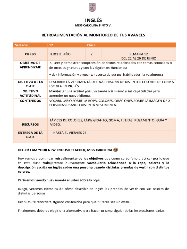 APRENDIZAJE12ClaseTERCER AO2SEMANA 12