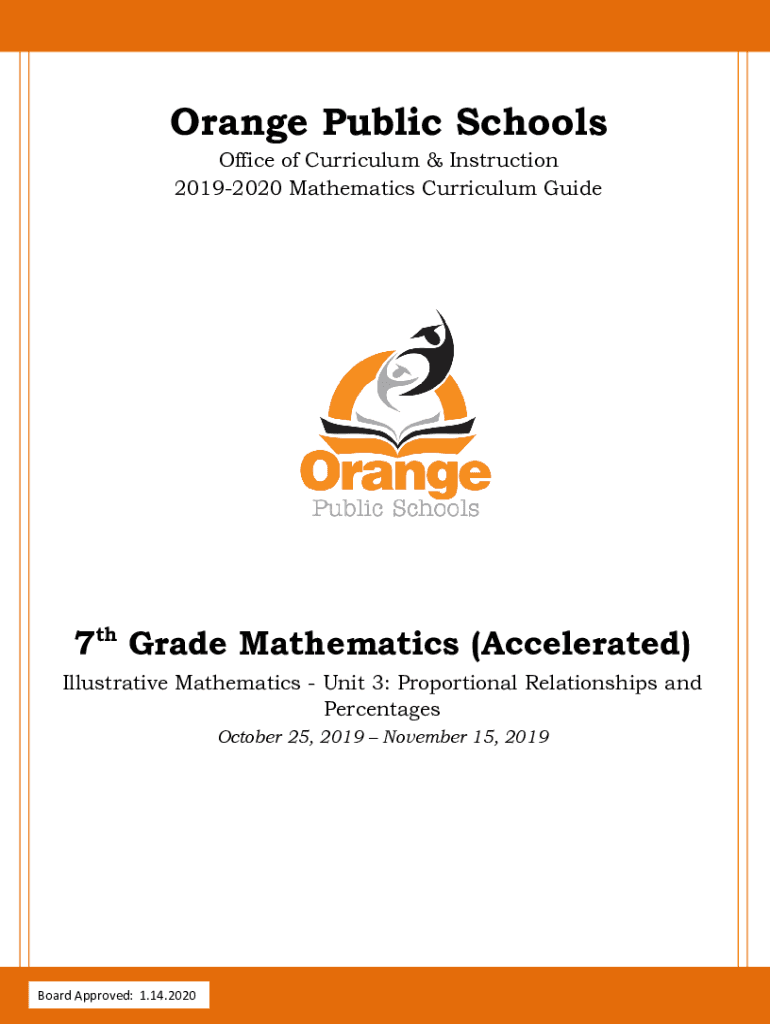 Orange Public Schools Office of Curriculum & Instruction 20192020 Mathematics Curriculum Guide7th Grade Mathematics (Accelerated) Illustrative Mathematics Unit 3: Proportional Relationships and Percentages