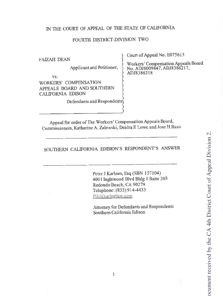 Cement received by the CA 4th District Court of Appeal Division 2.TABLE OF CONTENTS Page(s) Table ofContentsSTATEMENT OF CASE..............................................................................