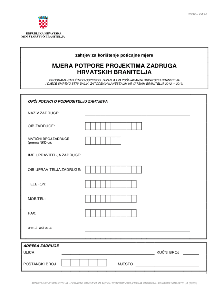 Get the free zahtjevpotpora PROJEKTIMA zadruga2013.doc