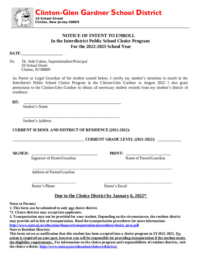 The N.J. district choice program could play a key role ... is a writable document that should be submitted to the specific address to provide specific info. It has to be completed and signed, which can be done manually in hard copy, or by using a particular software e. g. PDFfiller. It helps to fill out any PDF or Word document right in the web, customize it depending on your purposes and put a legally-binding e-signature. Once after completion, you can send the N.J. district choice program could play a key role ... to the relevant recipient, or multiple ones via email or fax. The template is printable too from PDFfiller feature and options offered for printing out adjustment. In both electronic and physical appearance, your form should have a clean and professional appearance. You may also save it as the template for further use, without creating a new file over and over. All that needed is to customize the ready document.