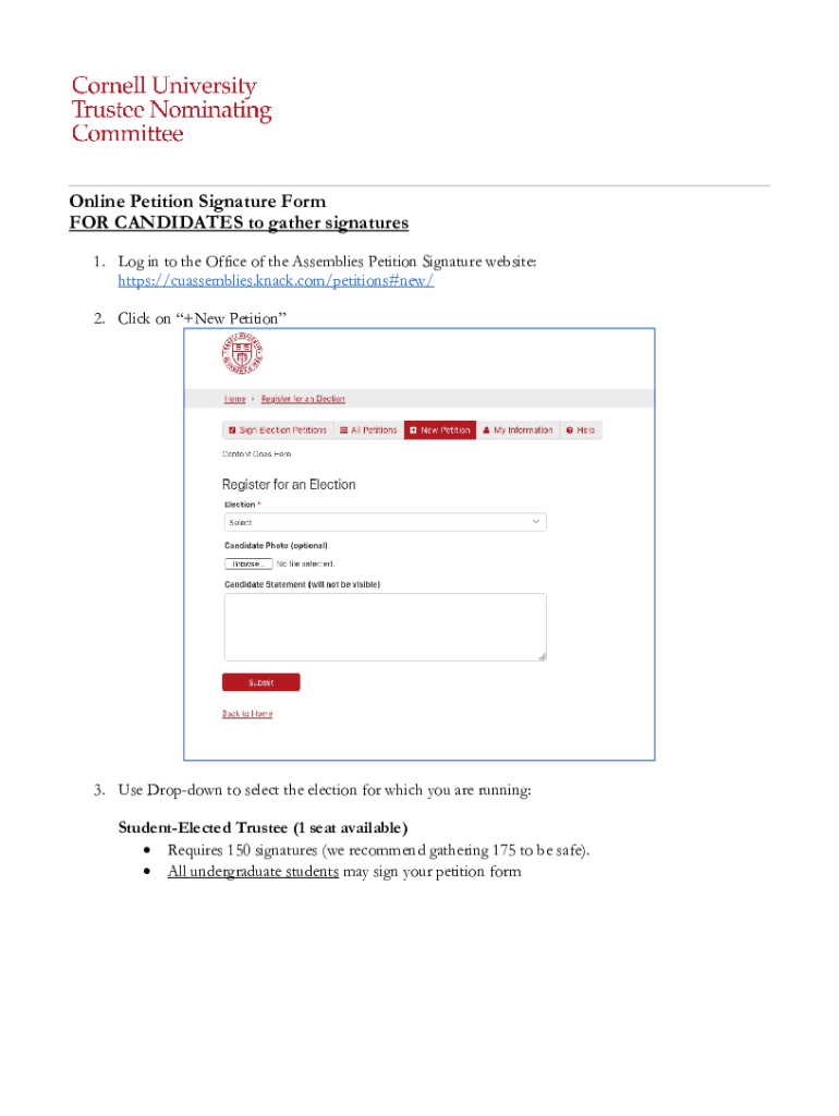 Get the free Online Petition Signature Form FOR CANDIDATES to ... - assembly cornell