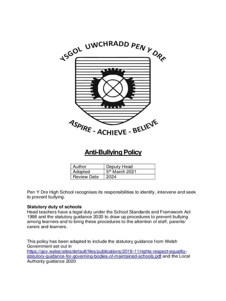 Get the free Anti Bullying Policy Author Deputy Head Adopted February ...