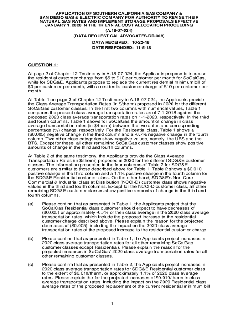APPLICATION OF SOUTHERN CALIFORNIA GAS COMPANY & SAN DIEGO GAS & ELECTRIC COMPANY FOR AUTHORITY TO REVISE THEIR NATURAL GAS RATES AND IMPLEMENT STORAGE PROPOSALS EFFECTIVE JANUARY 1, 2020, IN THE