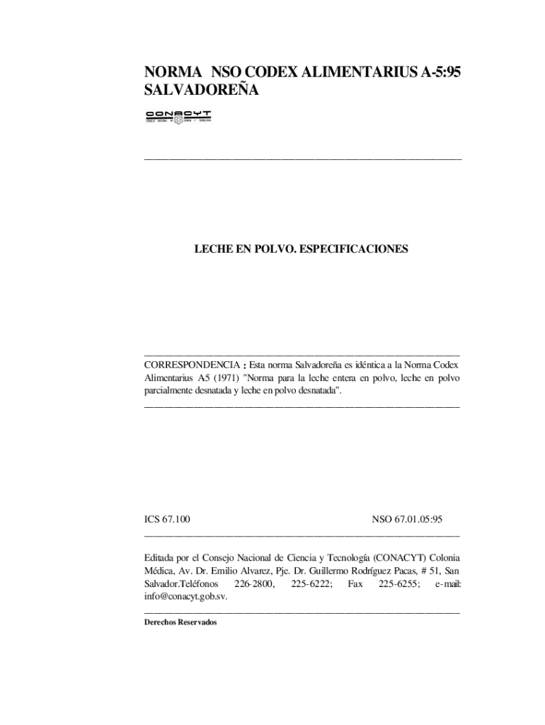 NORMA NO CODEX ALIMENTARY A5:95 SALVADOREA___LECHE EN POLO. SPECIFICATIONS___ CORRESPONDENCE : ESTA Norma Salvadorean BS identical à la Norma Codex Alimentary A5 (1971) \” Norma para la Lethe enter