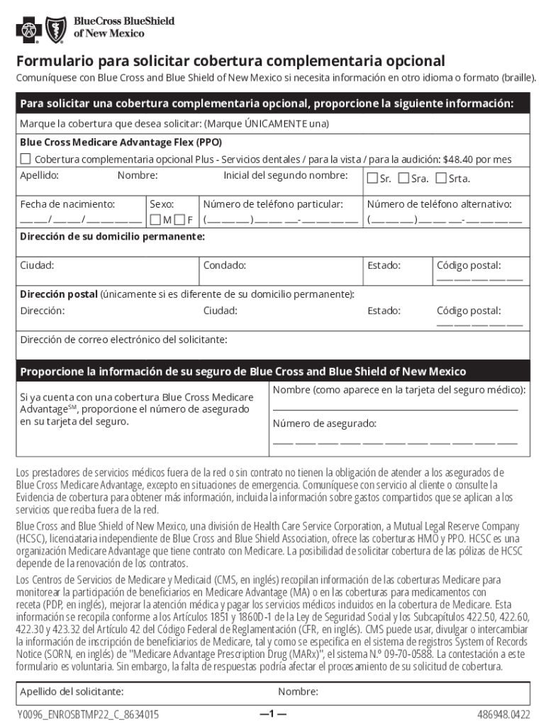 Conquest con Blue Cross and Blue Shield of New Mexico is necessity information en Otto idiom o format (braille). Para solicitor RNA overture