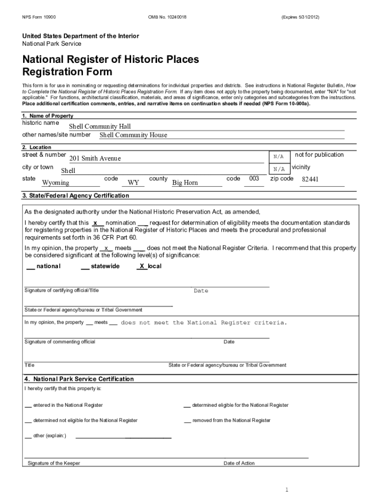 NPS Form 10900OMB No. 10240018(Expires 5/31/2012)United States Department of the Interior National Park ServiceNational Register of Historic Places Registration Form This form is for use in nominating