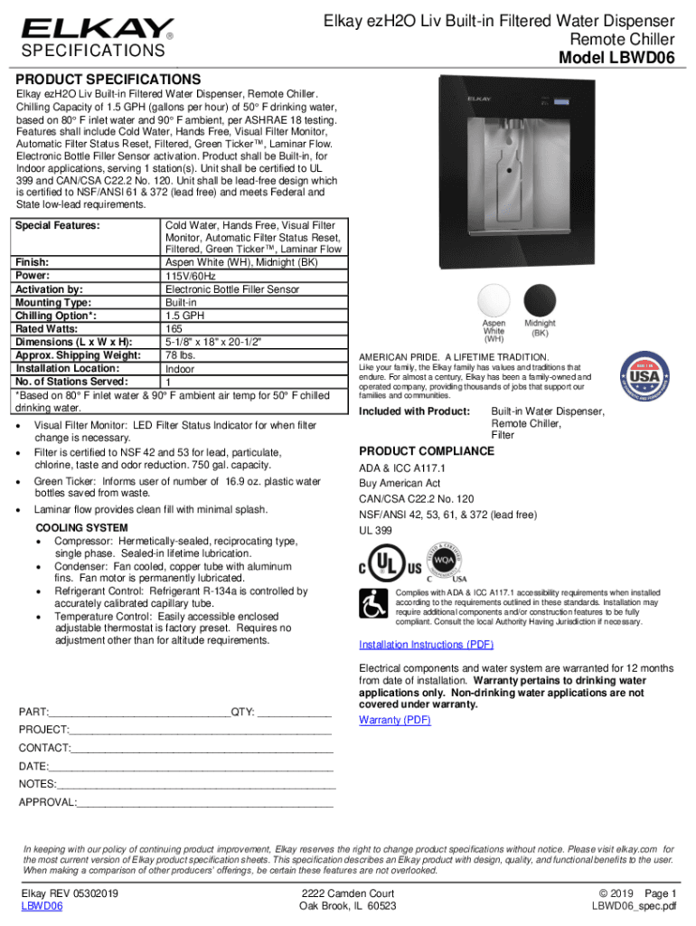 pdfFiller has made it simple to fill out and eSign elkay ezh2o liv built-in. The application has capabilities that allow you to modify and rearrange PDF content, add fillable fields, and eSign the document. Begin a free trial to discover all of the features of pdfFiller, the best document editing solution.