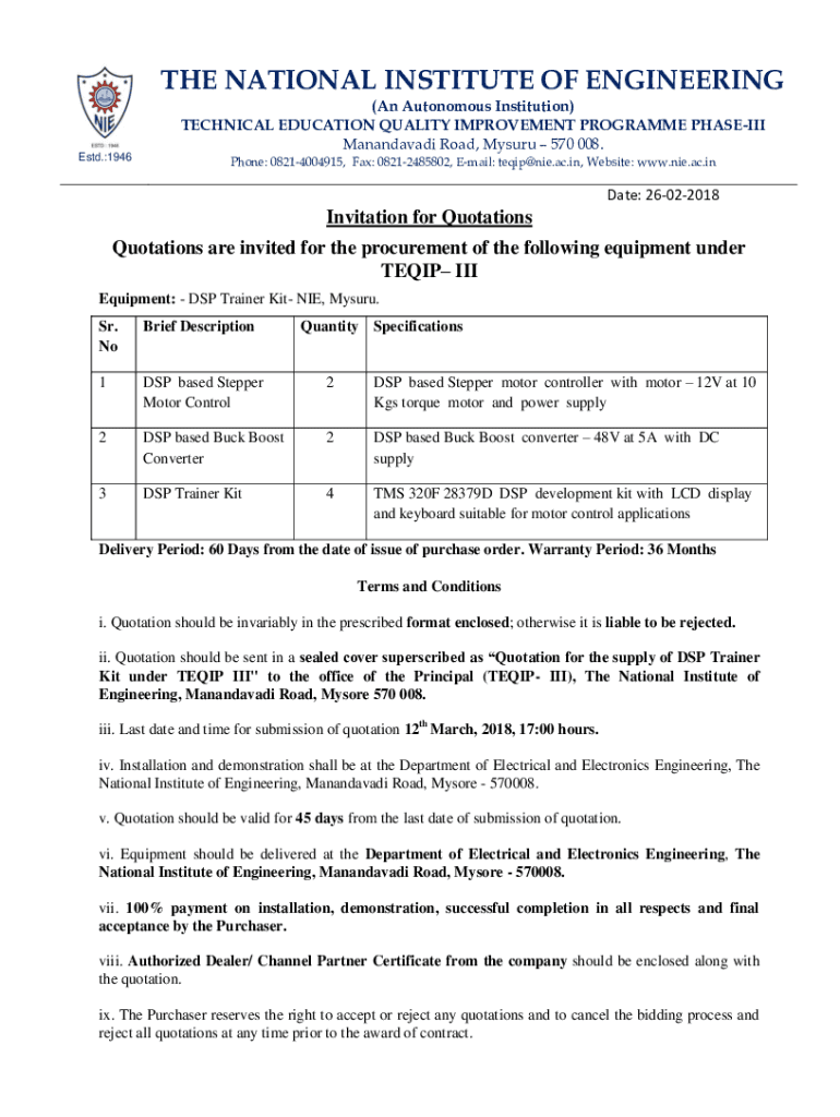 THE NATIONAL INSTITUTE OF ENGINEERING ESD.:1946(An Autonomous Institution) TECHNICAL EDUCATION QUALITY IMPROVEMENT Program PHASE Manandavadi Road, Maseru 570 008. Phone: 08214004915, Fax: 08212485802,