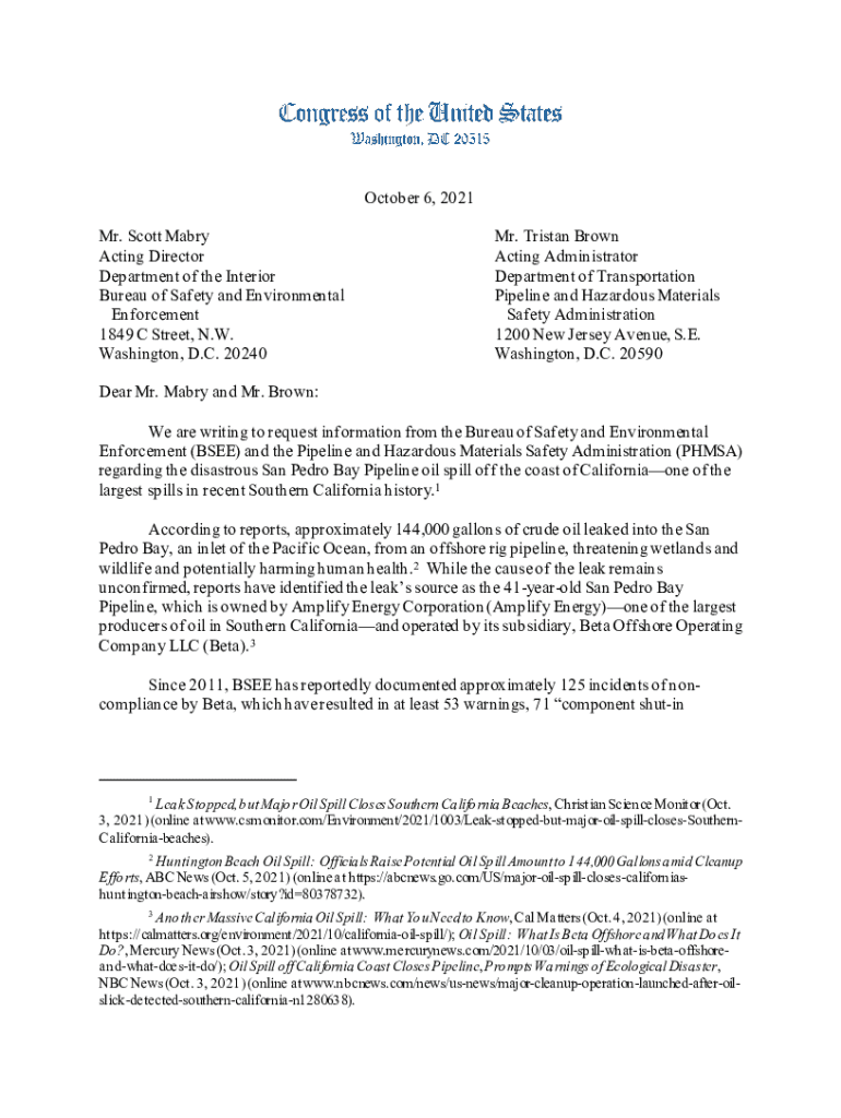 October 6, 2021, Mr. Scott Mary Acting Director Department of the Interior Bureau of Safety and Environmental Enforcement 1849 C Street, N.W. Washington, D.C. 20240Mr. Tristan Brown Acting Administrator