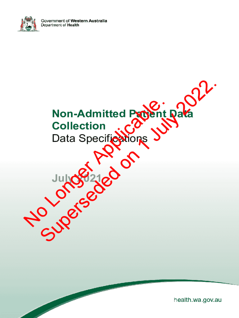 . 22 N o SU L PE on rs geed r A ed pp on LIC a 1 bl JU e. LY 20 Admitted Patient Data Collection Data Specifications July 2021Important Disclaimer: All information and content in this Material is
