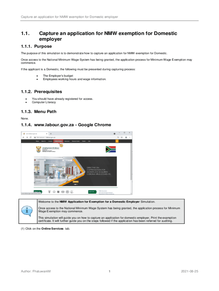 Capture an application for NEW exemption for Domestic employer1.1. Capture an application for NEW exemption for Domestic employer1.1.1. Purpose The purpose of this simulation is to demonstrate how