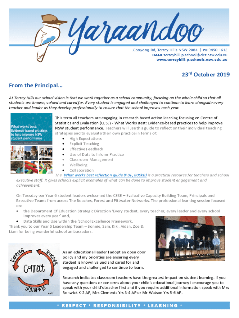 23rd October 2019 From the Principal At Terra Hills our school vision is that we work together as a school community, focusing on the whole child so that all students are known, valued and cared for.
