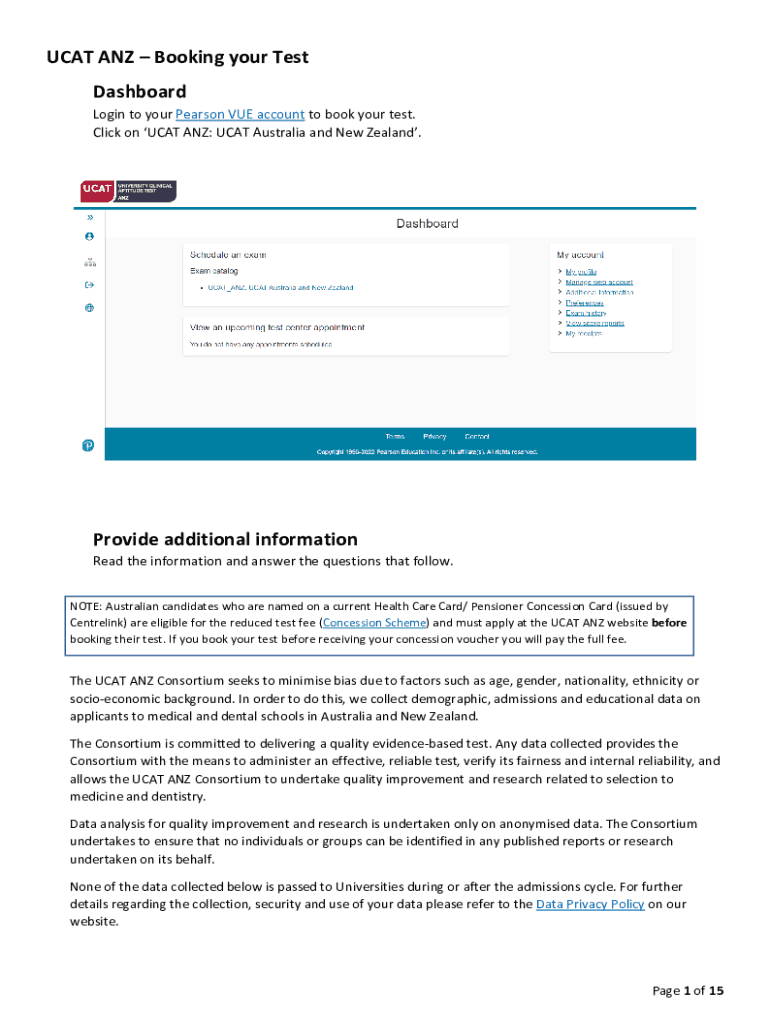 CAT ANZ Booking your Test Dashboard Login to your Pearson DUE account to book your test. Click on CAT ANZ: CAT Australia and New Zealand. Provide additional information Read the information and answer