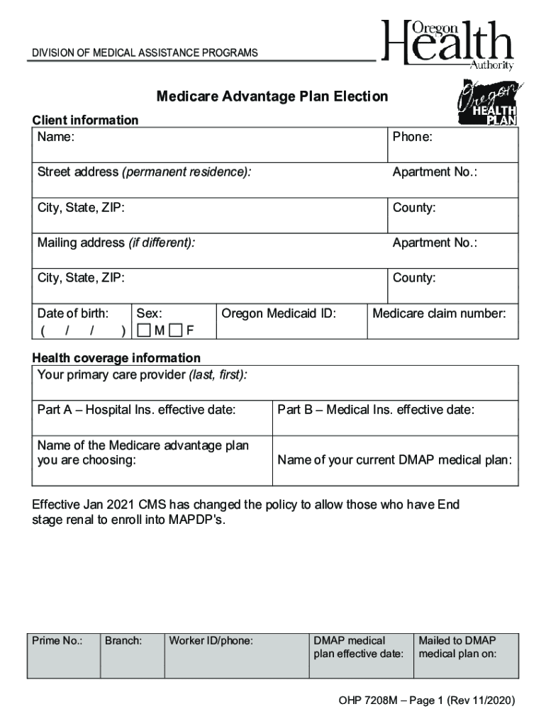 DIVISION OF MEDICAL ASSISTANCE PROGRAMS Medicare Advantage Plan Election Client information Name:Phone:Street address (permanent residence):Apartment No.:City, State, ZIP:County:Mailing address (if