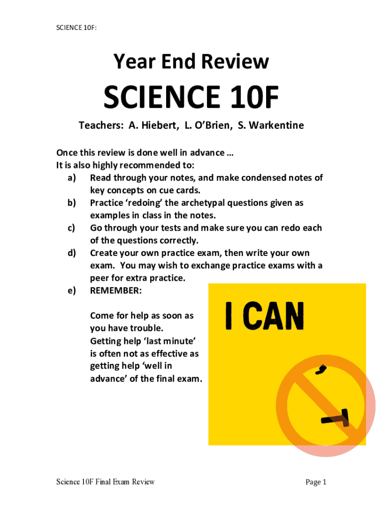 Get the free Year End Review - SCIENCE 10F