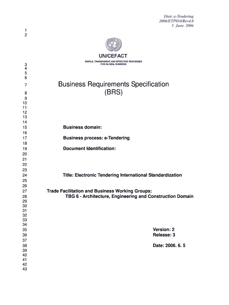Dist.:e-Tendering 2006/ETP034/Rev4.0 5 June 2006 1 2 3 4 5 6 7 8 9 10 11 12 13 14 15 16 17 18 19 20 21 22 23 24 25 26 27 28 29 30 31 32 33 34 35 36 37 38 39 40 41 42 43 Business Requirements Specification