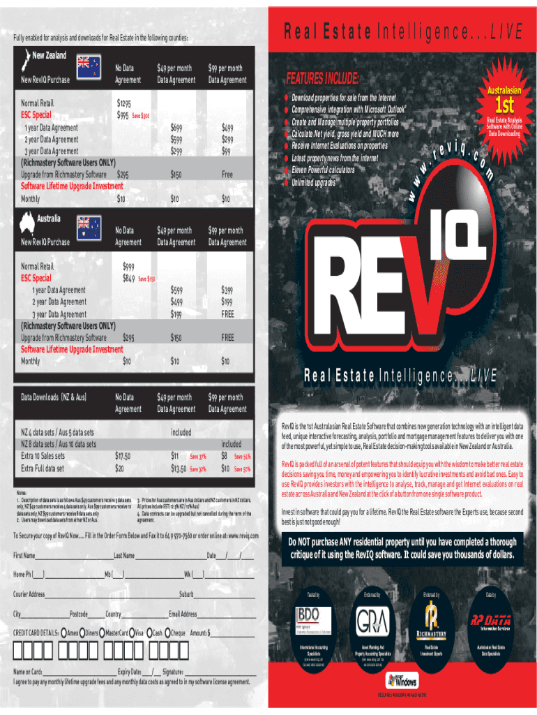Real Estate Intelligence... Literally enabled for analysis and downloads for Real Estate in the following counties:New Zealand No Data Agreement Rev IQ Purchase$49 per month Data Agreement Normal