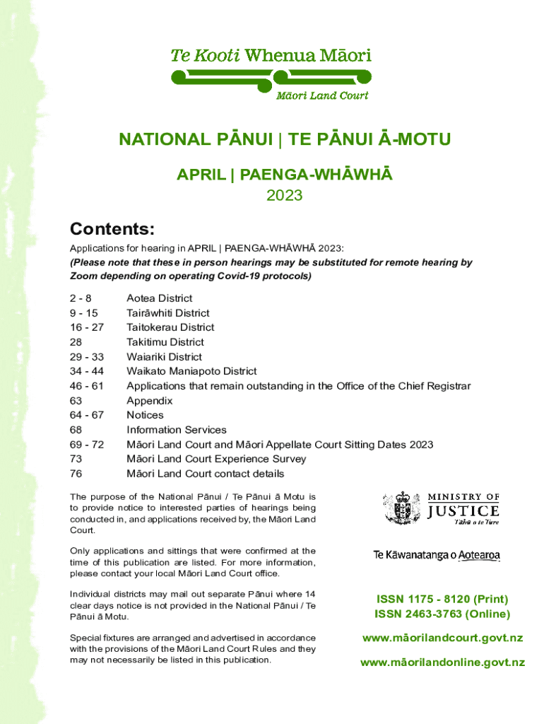 Applications for hearing in APRIL | PAENGAWHWH 2023: