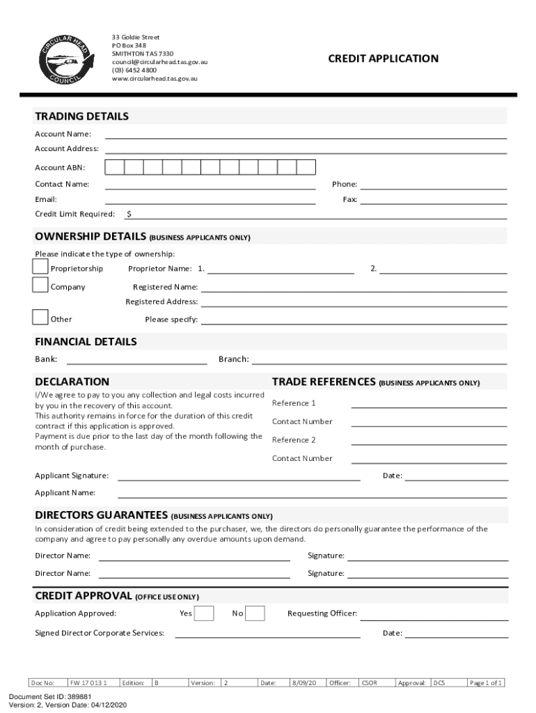 www.circularhead.tas.gov.auCREDIT APPLICATIONTRADING DETAILS