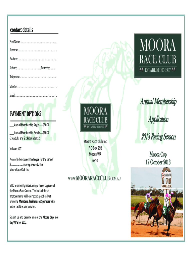 Get the free Annual Membership Application 2013 Racing Season