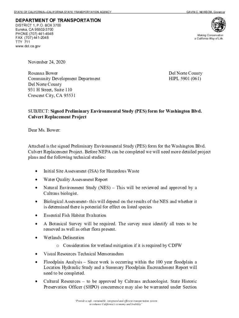 STATE OF CALIFORNIACALIFORNIA STATE TRANSPORTATION AGENCYGAVIN C. NEWSOM, GovernorDEPARTMENT OF TRANSPORTATIONDISTRICT 1, P.O. BOX 3700 Eureka, CA 955023700 PHONE (707) 4414548 FAX (707) 4412048 TTY