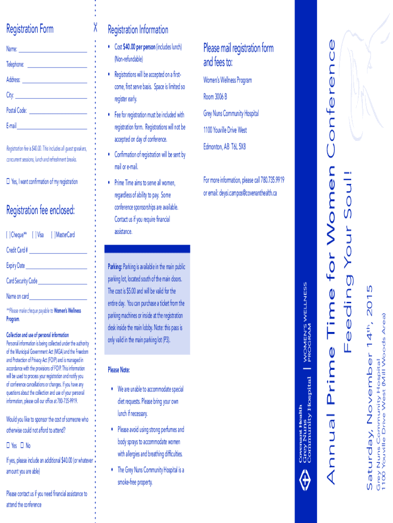 Cost $40.00 per person (includes lunch) (Nonrefundable)Registrations will be accepted on a firstTelephone: ___ Address: ___come, first serve basis. Space is limited so register early. City: ___ Postal