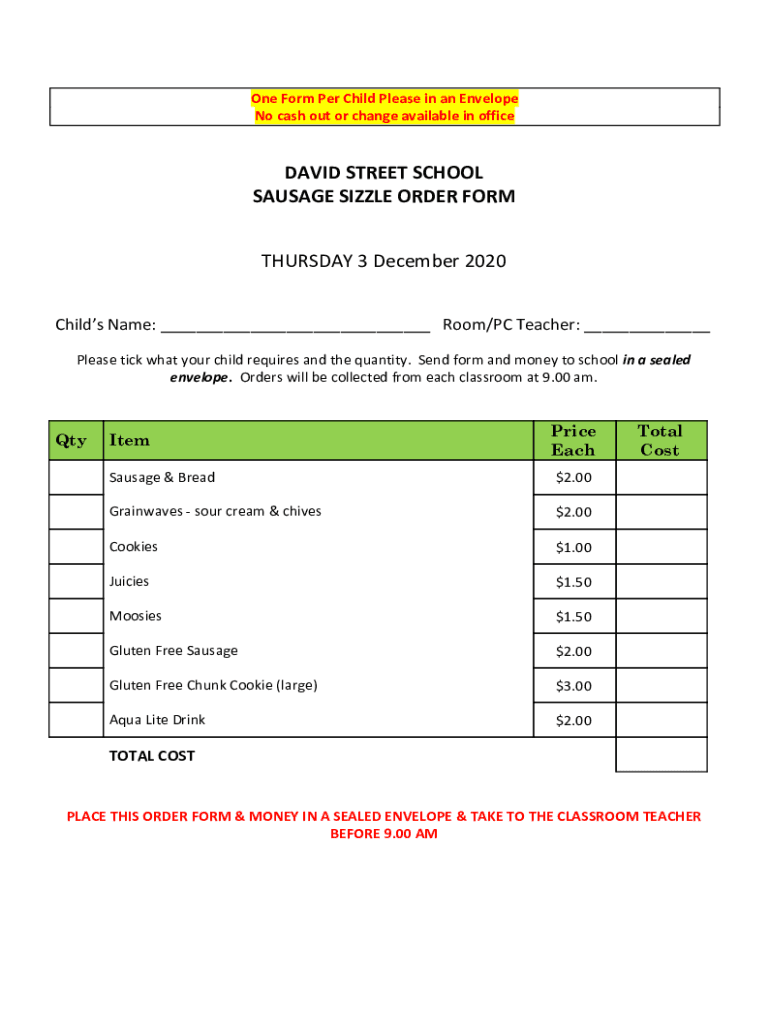 Get the free Sausage Sizzle order form