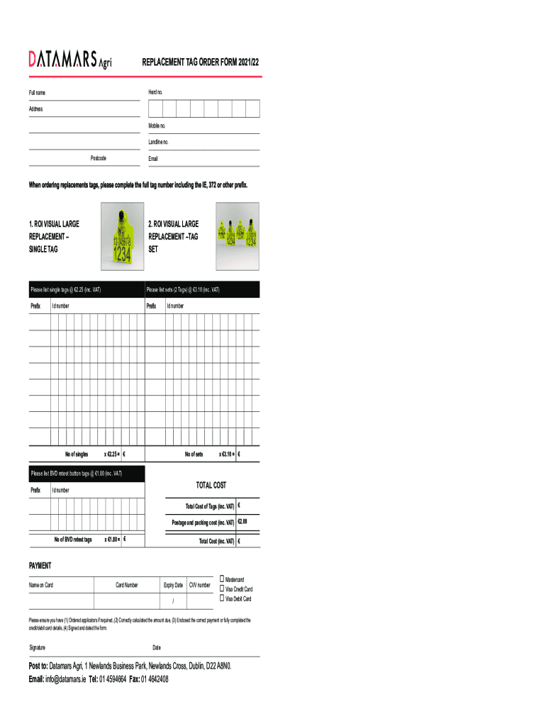 REPLACEMENT TAG ORDER FORM 2021/22