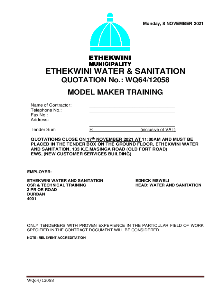 Monday, 8 NOVEMBER 2021ETHEKWINI WATER & SANITATION