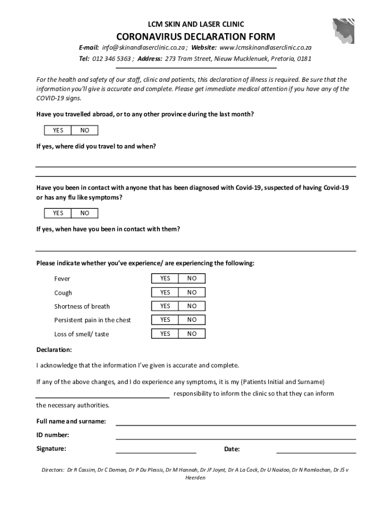 LCM SKIN AND LASER CLINICCORONAVIRUS DECLARATION FORM
