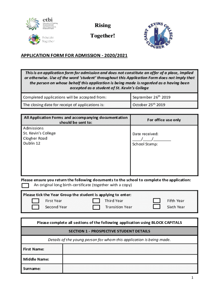 Rising Together!APPLICATION FORM FOR ADMISSION 2020/2021This is an application form for admission and does not constitute an offer of a place, implied or otherwise. Use of the word student throughout