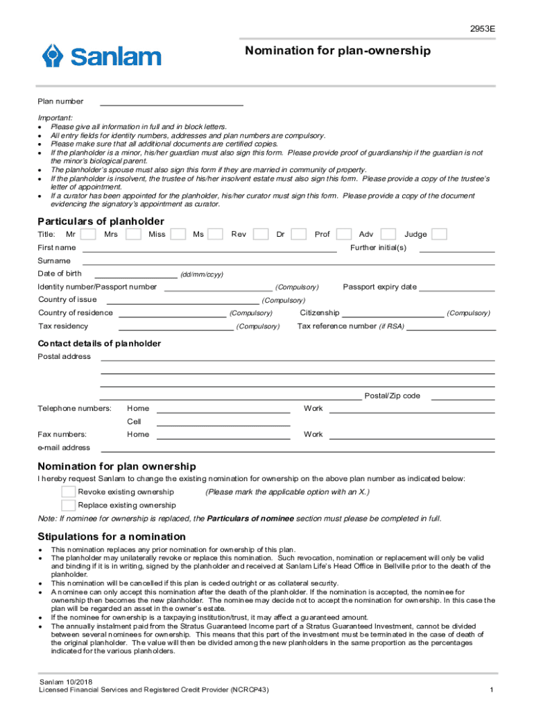 Nomination For Plan-Ownership is not the form you're looking for?Search for another form here.