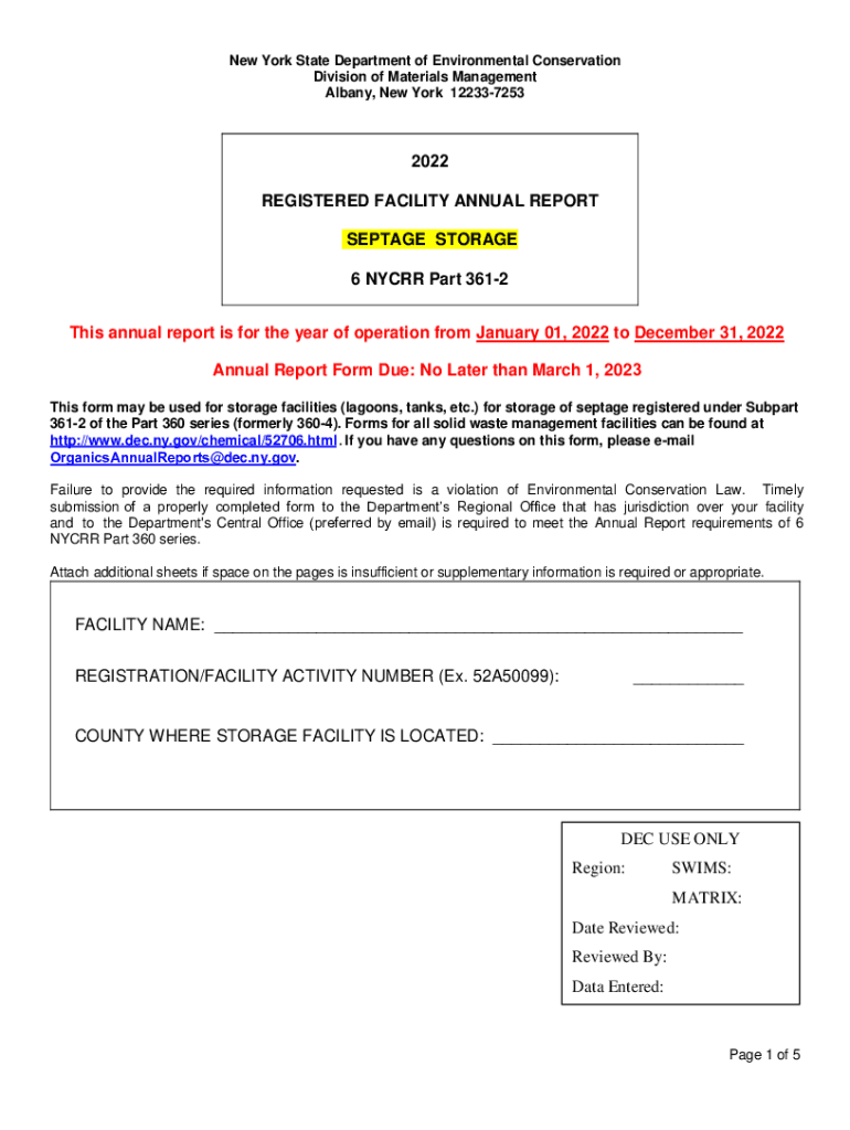 Get the free NYSDEC PART 360 ANNUAL REPORT FORMS DUE ...