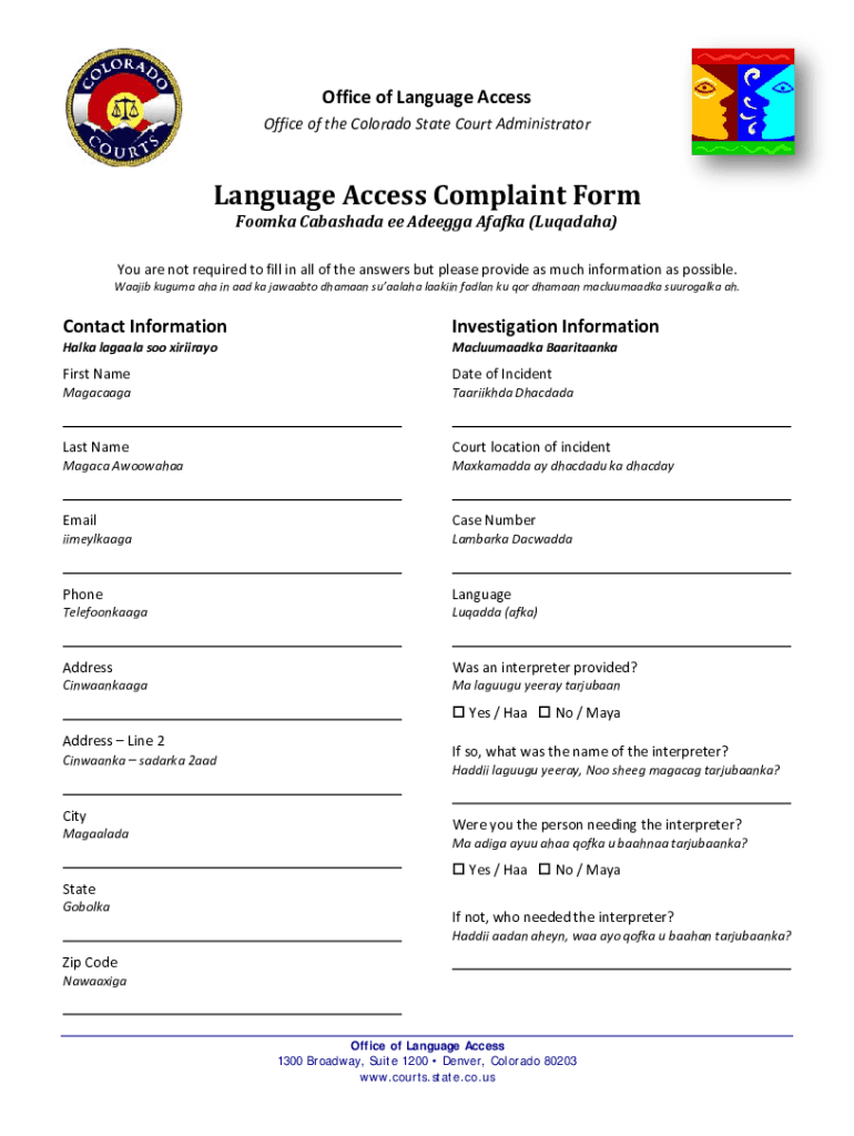 Office of the Colorado State Court AdministratorLanguage Access Complaint Form