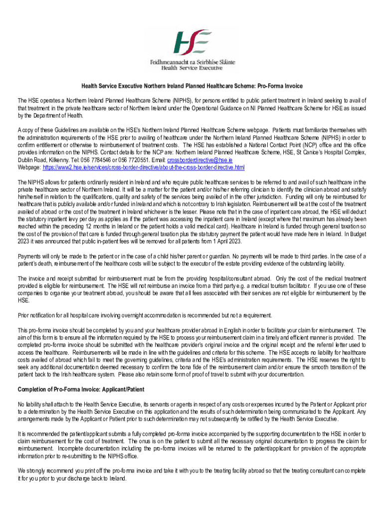 Health Service Executive Northern Ireland Planned Healthcare Scheme: Proforma Invoice The HSE operates a Northern Ireland Planned Healthcare Scheme (NIPS), for persons entitled to public patient treatment