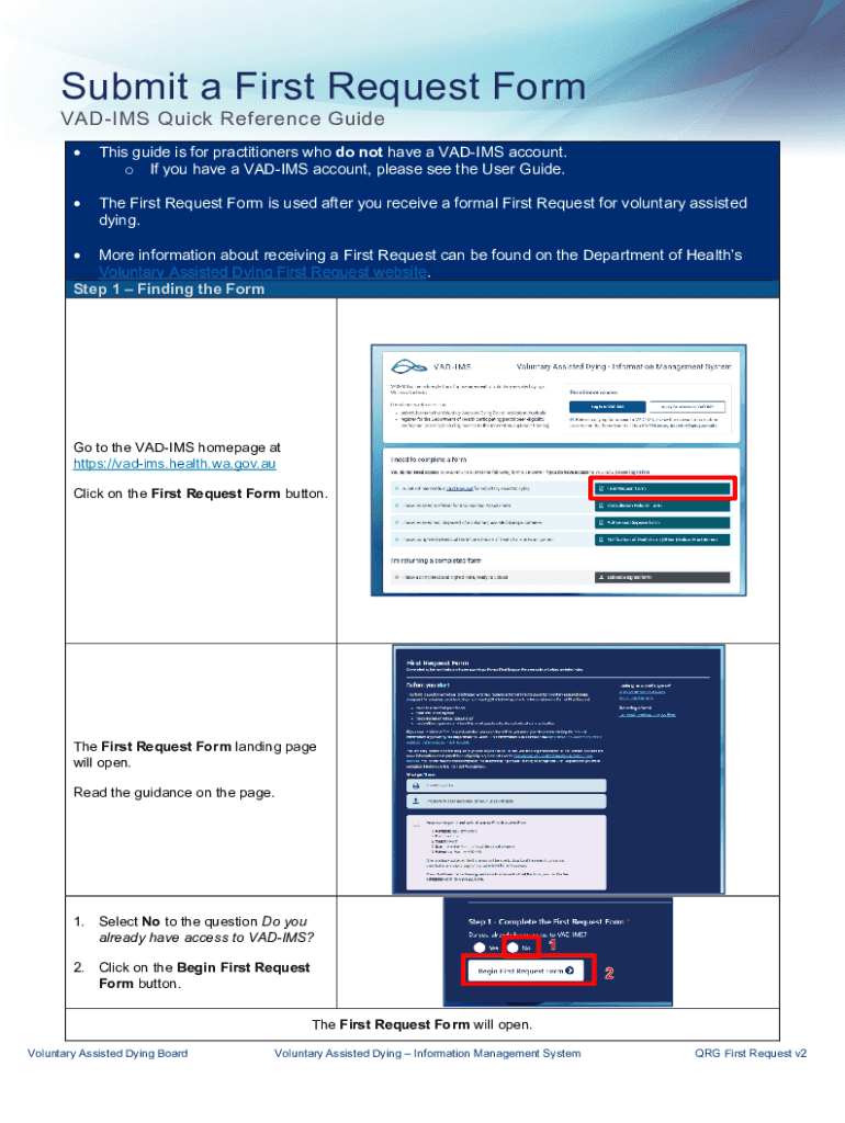 Submit a First Request Form VADIM Quick Reference Guide This guide is for practitioners who do not have a VADIM account. O If you have a VADIM account, please see the User Guide. The First Request