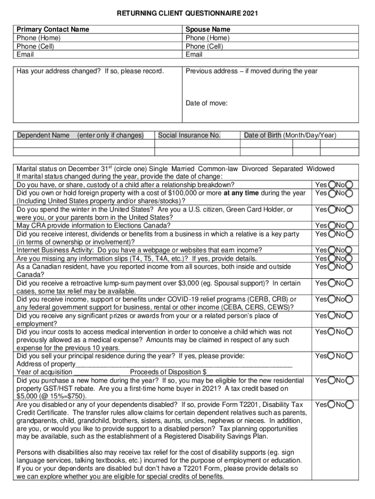 RETURNING CLIENT QUESTIONNAIRE 2021