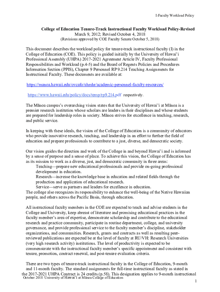 Get the free University Faculty Workload Policy and Guidelines - NIU - manoa hawaii