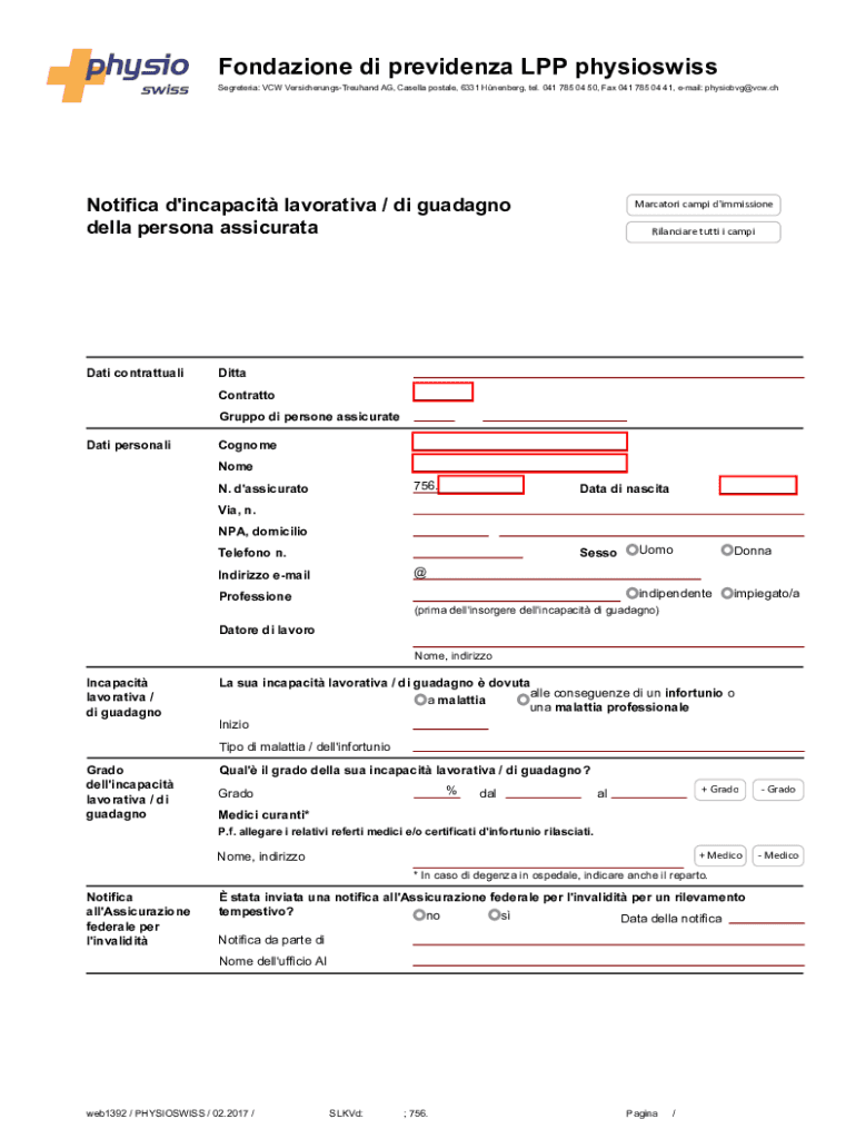 Get the free Notifica d'incapacit lavorativa / di guadagno. Notifica d'incapacit lavorativa / di ...