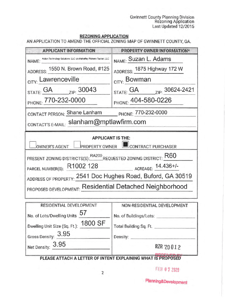 Gwinnett County Planning Division Rezoning Application Last Updated 12/2015REZONING APPLICATION AN APPLICATION TO AMEND THE OFFICIAL ZONING MAP OF GWINNETT COUNTY, GA. APPLY.:SCANT INFORMATION Action