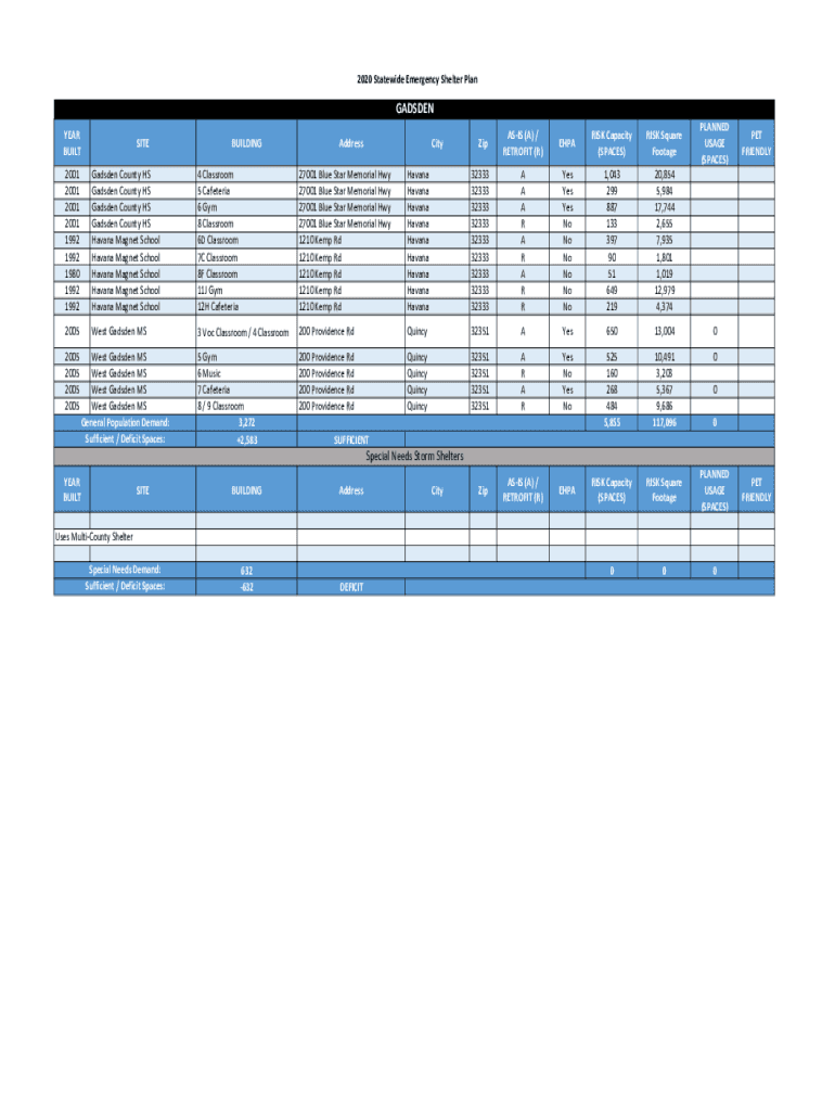 2020 Statewide Emergency Shelter PlanGADSDEN
