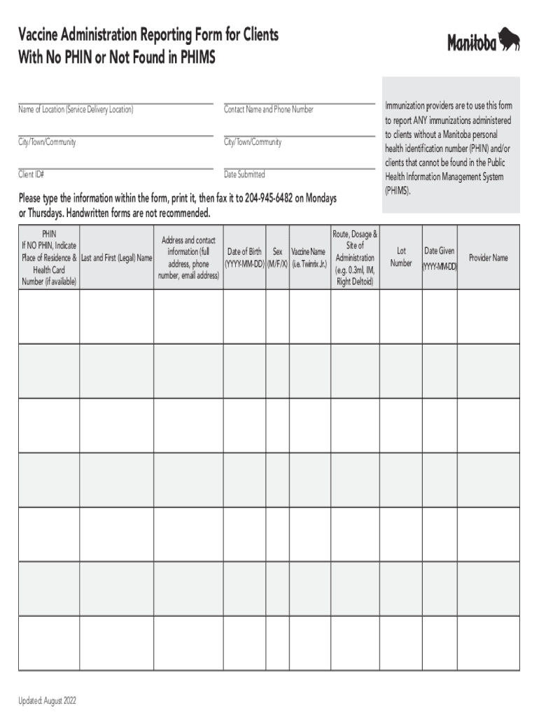 Get the free Vaccine Administration Reporting Form for Clients With No ...