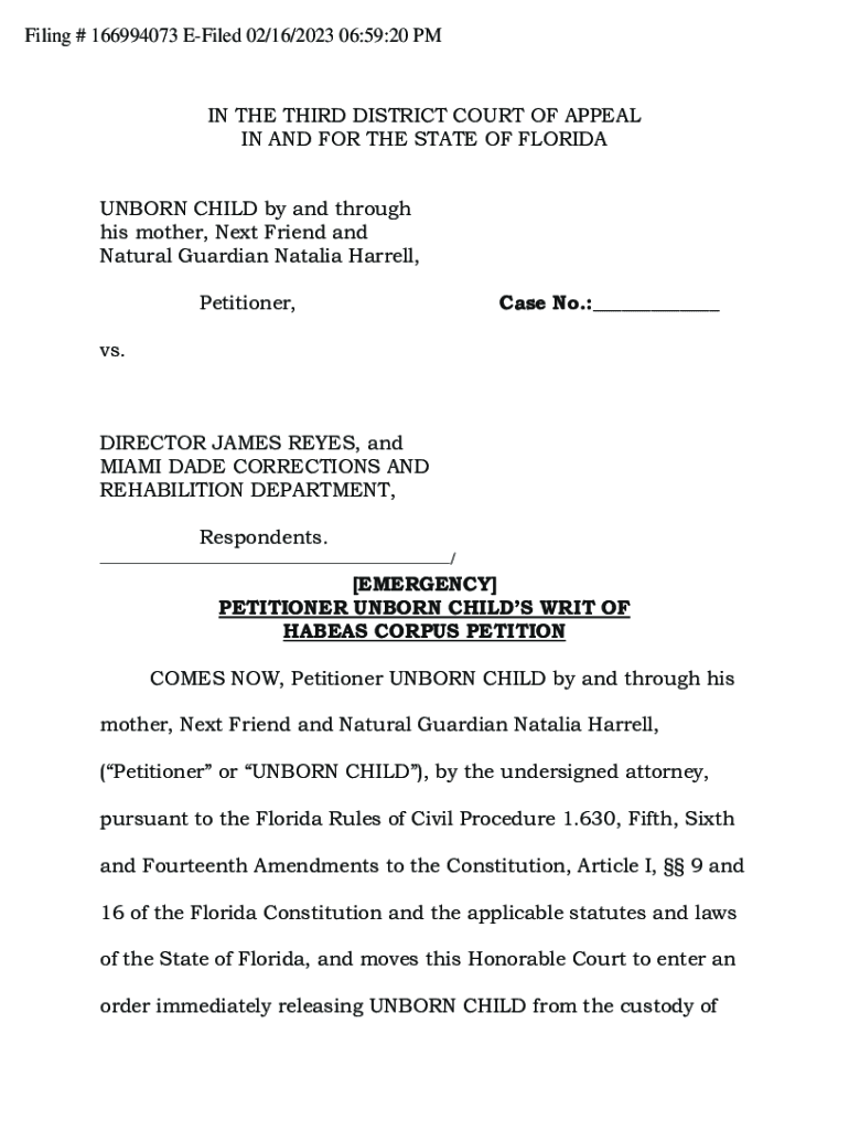 Filing # 166994073 Filed 02/16/2023 06:59:20 PAIN THE THIRD DISTRICT COURT OF APPEAL IN AND FOR THE STATE OF FLORIDA UNBORN CHILD by and through his mother, Next Friend and Natural Guardian Natalia