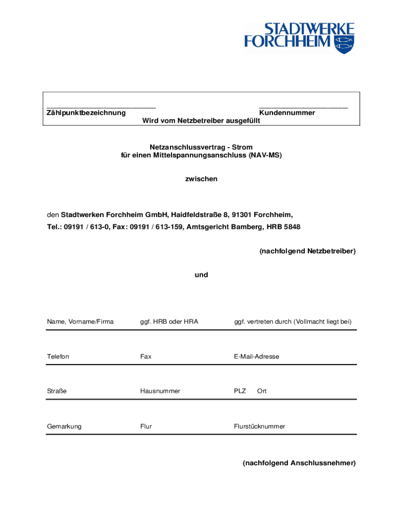 for linen Mittelspannungsanschluss (NAVES)zwischenden Stadtwerken Forehead GmbH, Haidfeldstrae 8,
