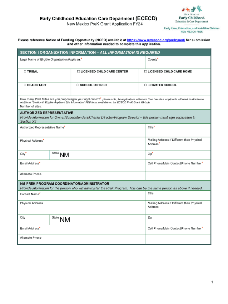 Early Childhood Education Care Department (ECDCD) New Mexico Prey Grant Application FY24Please reference Notice of Funding Opportunity (NO FO) available at https://www.nmececd.org/prekgrant/ for submission