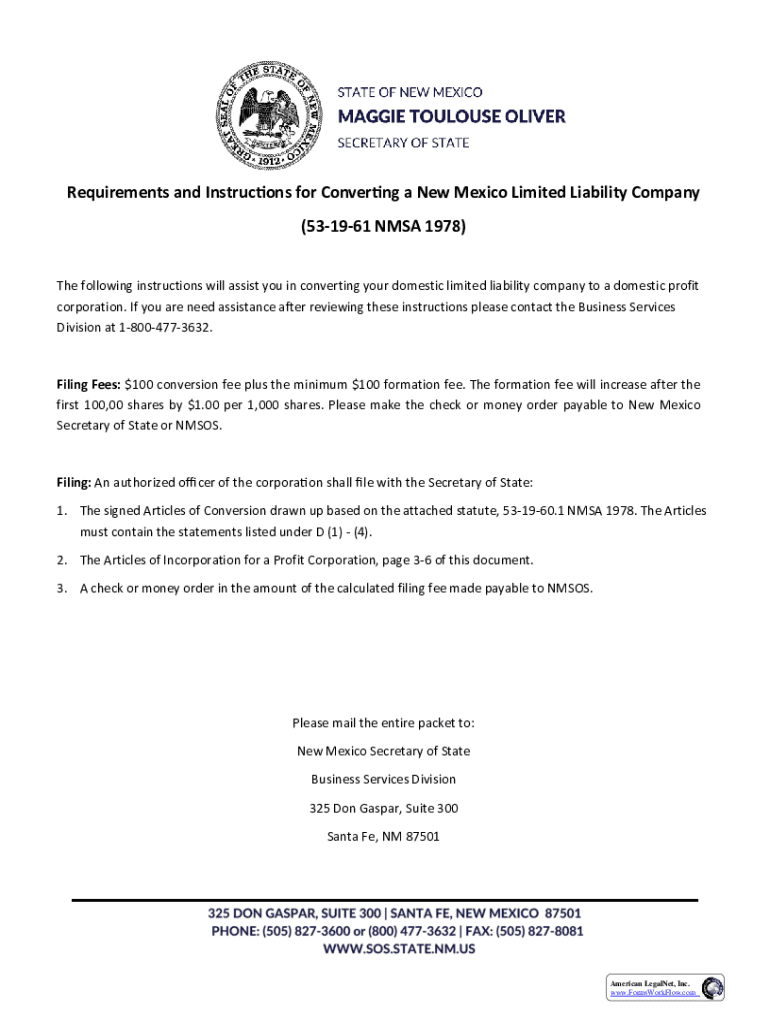 Requirements and Instructions for Converting a New Mexico Limited Liability Company (531961 NASA 1978) The following instructions will assist you in converting your domestic limited liability company