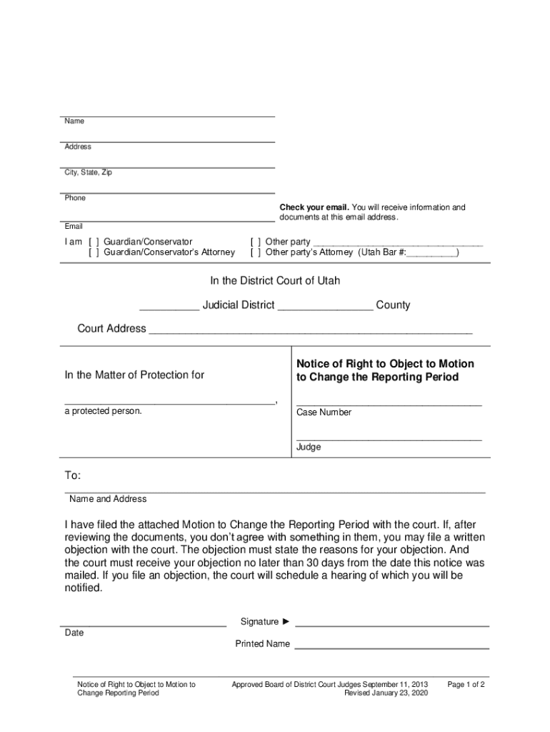 Get the free Notice of Right to Object to Motion to Change the Reporting ...
