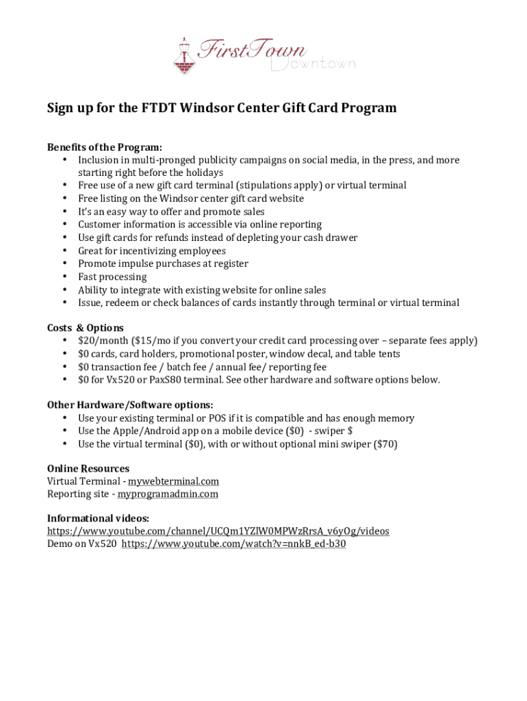 Sign up for the TDT Windsor Center Gift Card ProgramBenefits of the Program: Inclusion in multi pronged publicity campaigns on social media, in the press, and mo restarting right before the holidays